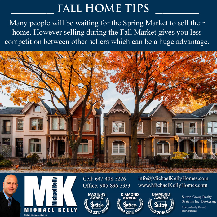 for the spring Market to sell their home. However selling during the fall market gives you less competition between