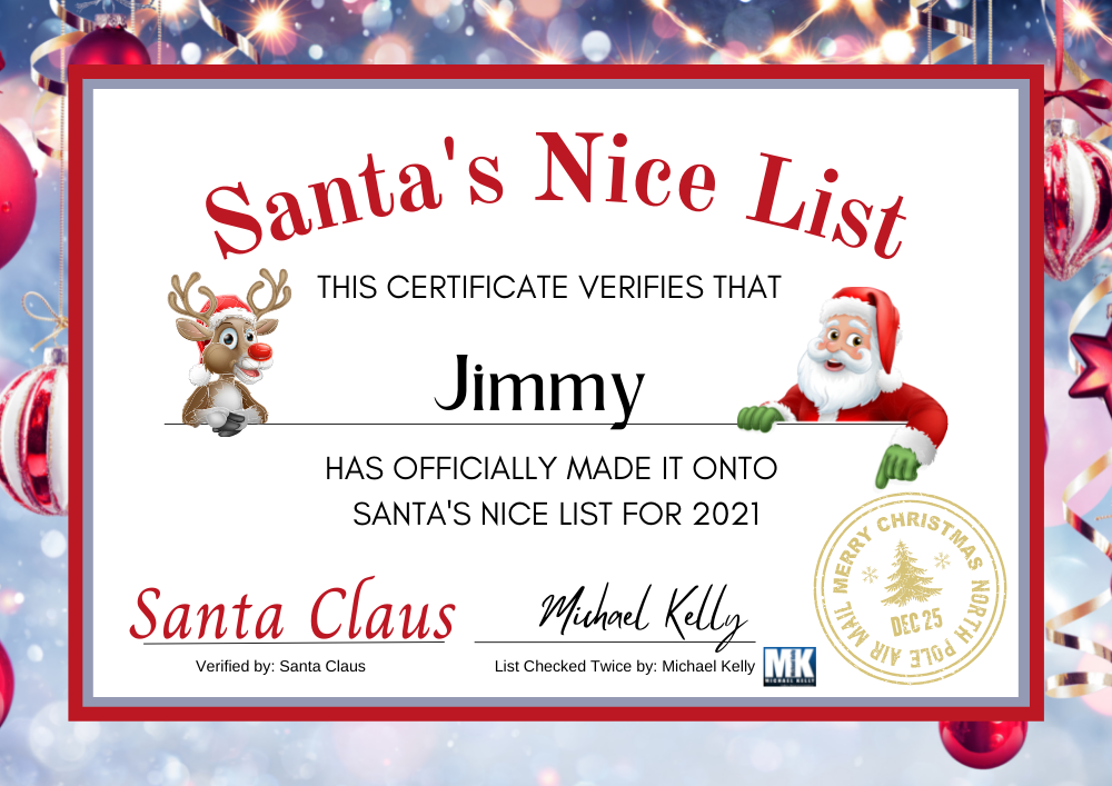 The guy in the Big Red Suit wants to make sure kids around the world know how special they are. Click the button below to make sure your child receives their Nice List Digital Certificate from the North Pole.